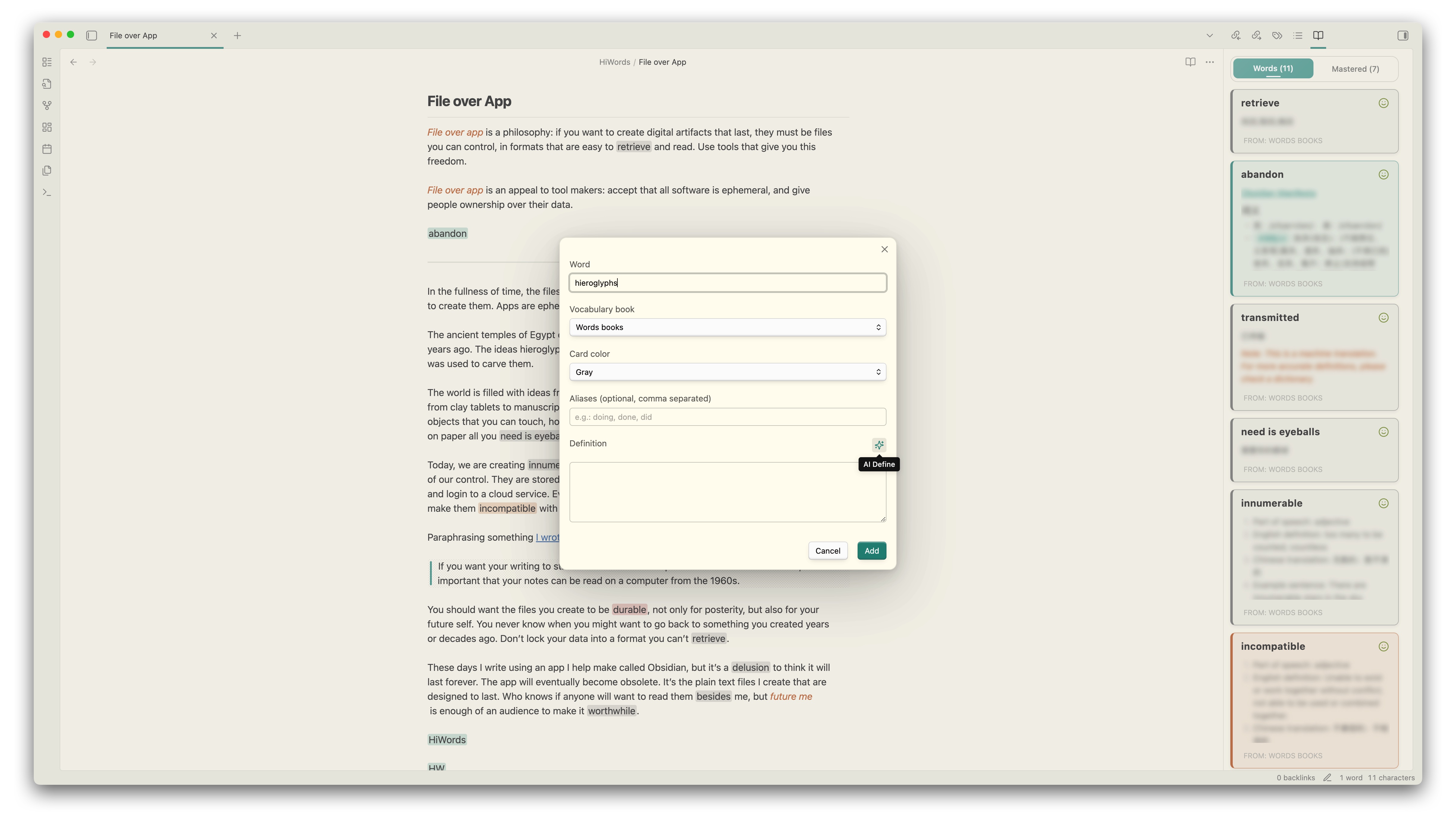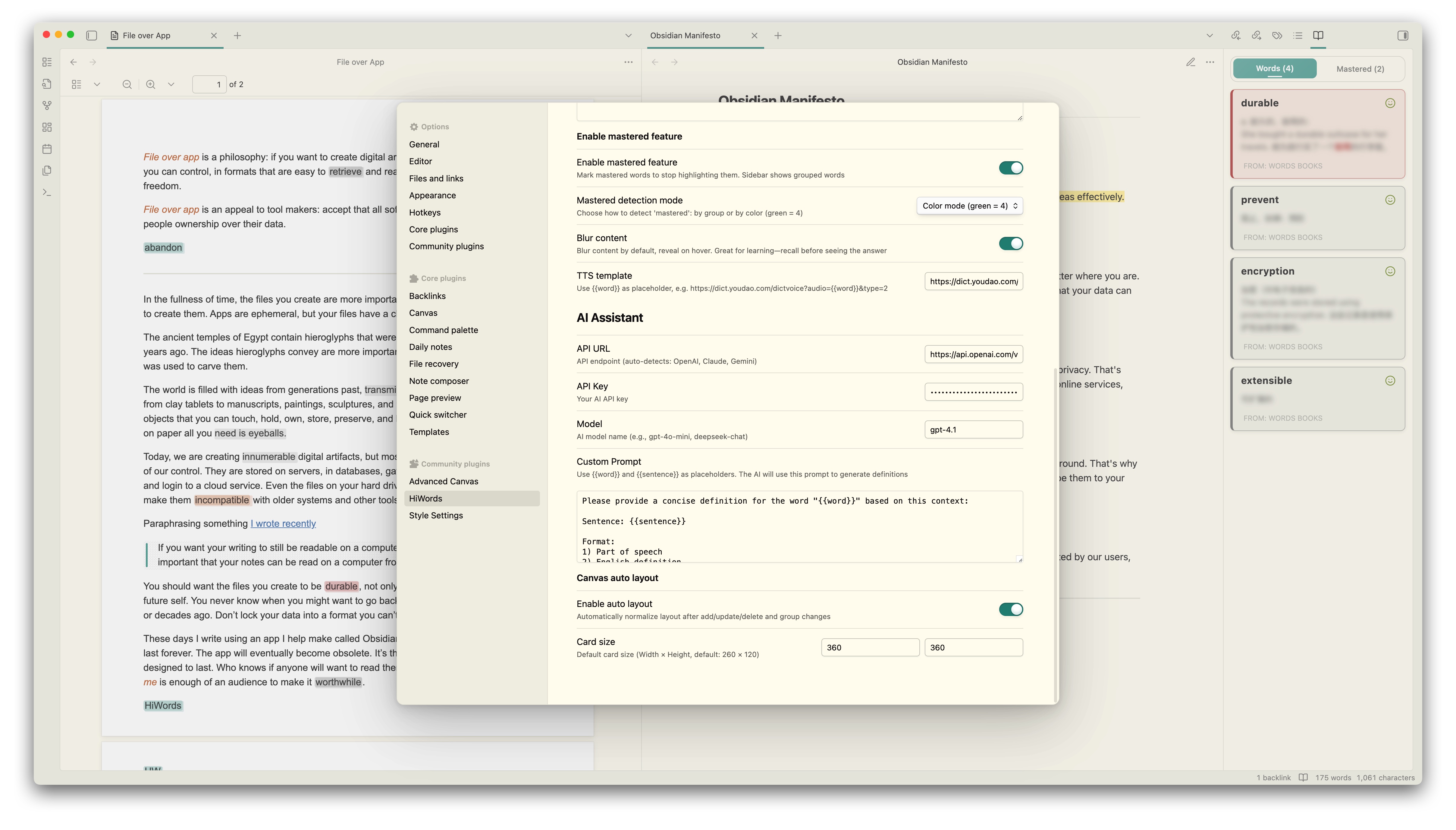 HiWords - Smart Vocabulary Manager for Obsidian