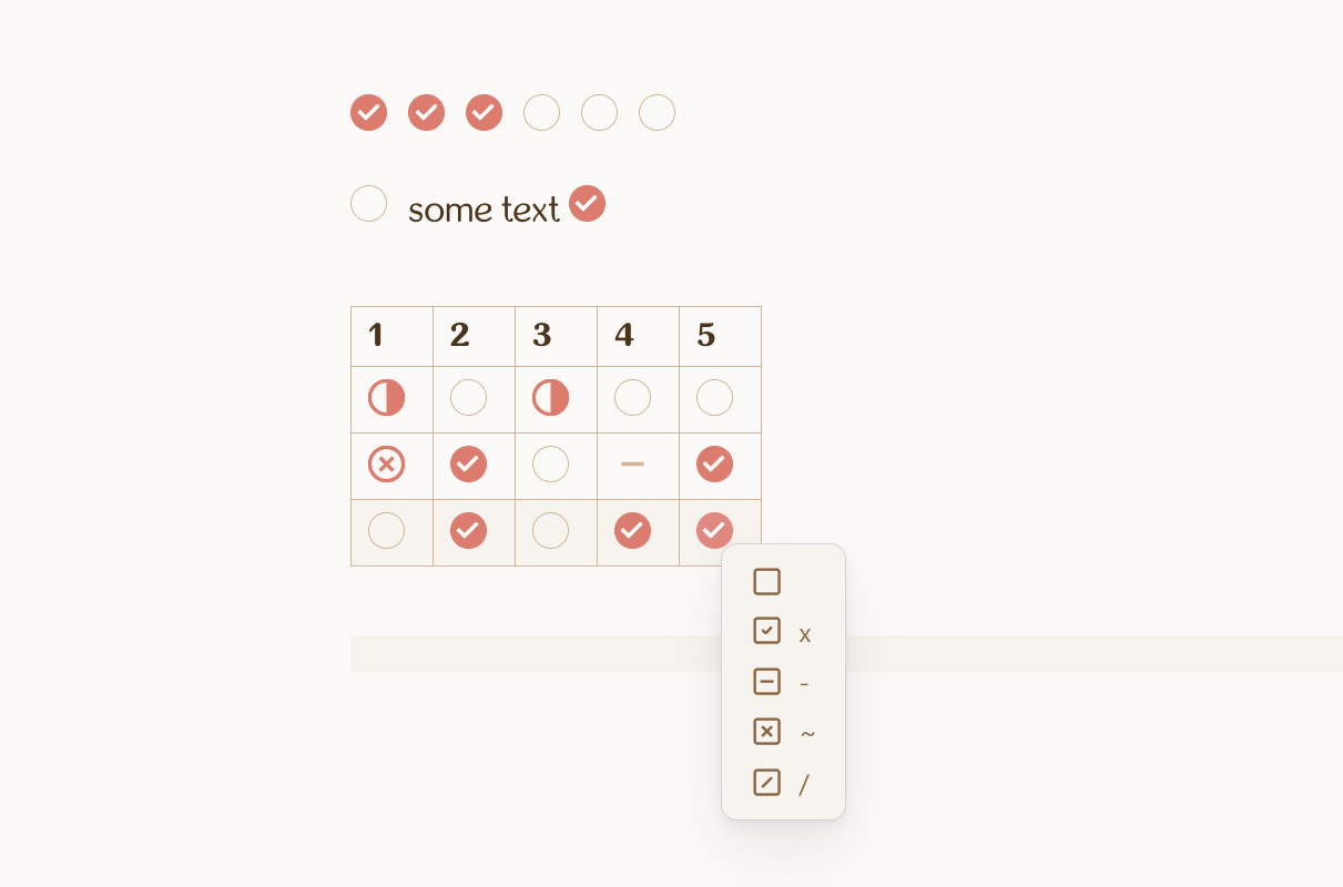 When right-clicking on the checkbox you will see the menu allowing you to select between a few of alternate checkboxes (you will need the theme or special css to make alternate checkboxes look different). Note that not all of possble alternate checkboxes are supported, and I am not planning to add more. When the alternate checkboxes menu appears inside the table it will hide the default table right-click menu. If you want to see table right-click menu, you should click on some other place in the cell.
