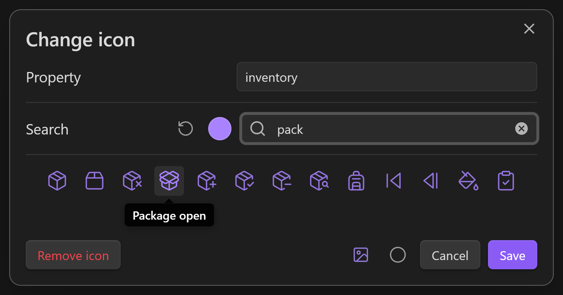 The icon picker will also display a warning if a rule in your rulebook is overruling its icon. To learn about that feature, see below.