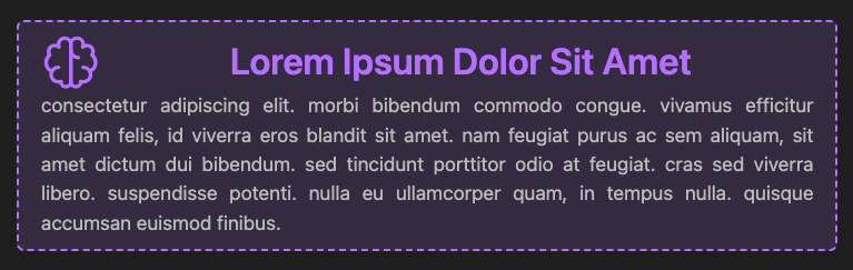 `~![iconoir-brain|currentColor|48px|48px]` **Lorem Ipsum Dolor Sit Amet** consectetur adipiscing elit. morbi bibendum commodo congue. vivamus efficitur aliquam felis, id viverra eros blandit sit amet. nam feugiat purus ac sem aliquam, sit amet dictum dui bibendum. sed tincidunt porttitor odio at feugiat. cras sed viverra libero. suspendisse potenti. nulla eu ullamcorper quam, in tempus nulla. quisque accumsan euismod finibus.