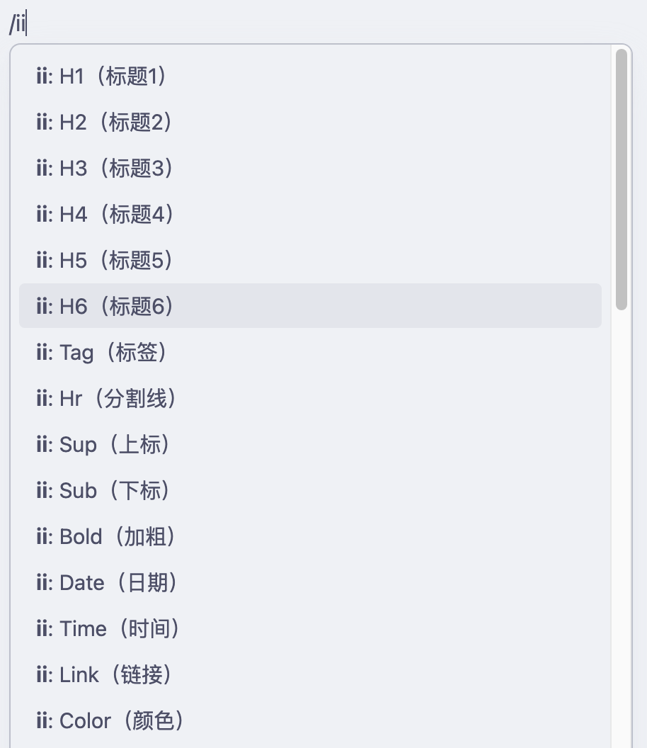 In addition to the common Markdown code and HTML code, you can also customize the code, through the custom command configuration, you can generate your code into input commands.