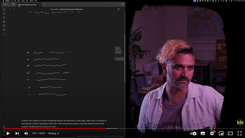 Note also that the drawing functionality will not take the place of Excalidraw. Excalidraw provides a feature rich ability to diagram holistically, whereas this plugin is built around freeform natural pen input. I personally like sketching more freeform with only minimal aid of drag and drop elements, so this is what drawing here is focussed on as that aligns with a handwritten style of taking notes as well.