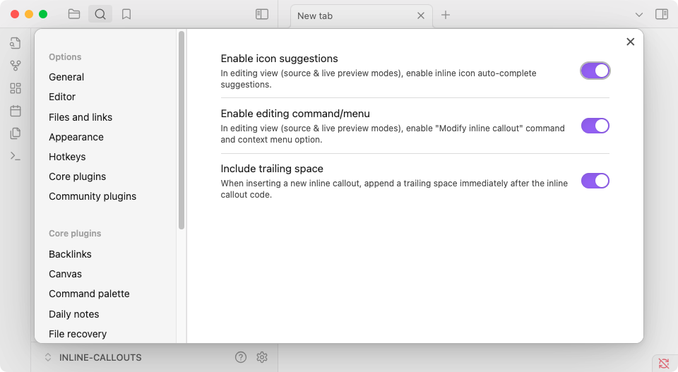 - Enable the "Inline Callouts" plugin in the community plugin list