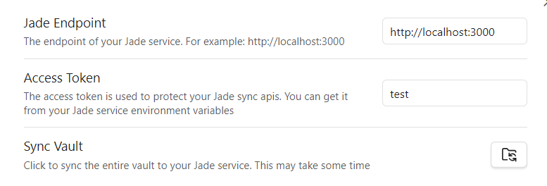 Once you perform any changes to your vault, you can click Sync your changes to Jade