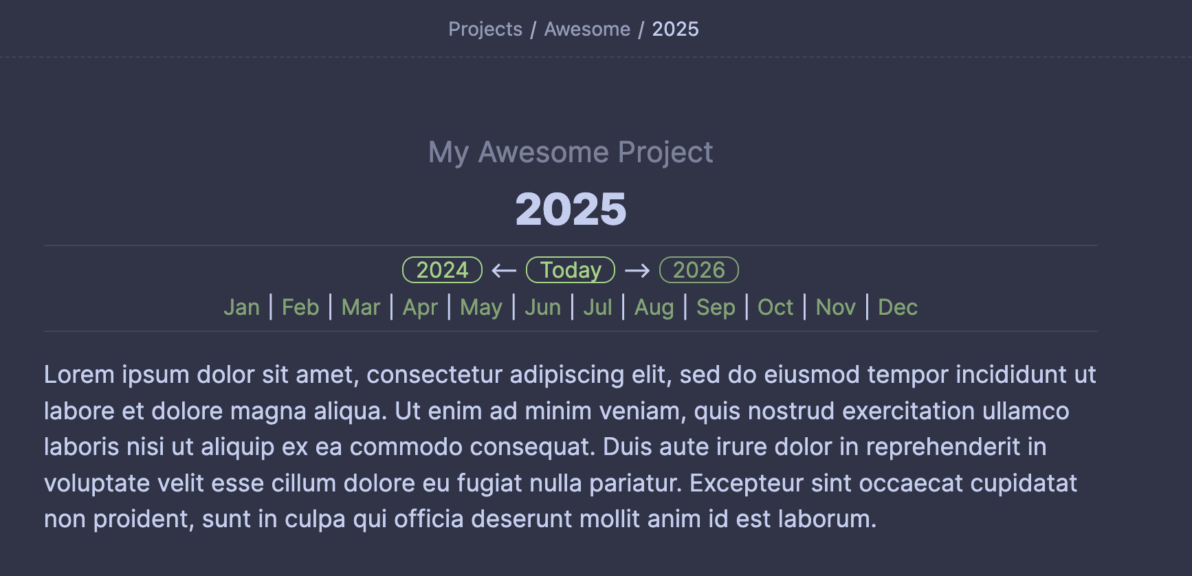 - Renders links or plain text labels for each month that falls in the current link's year.