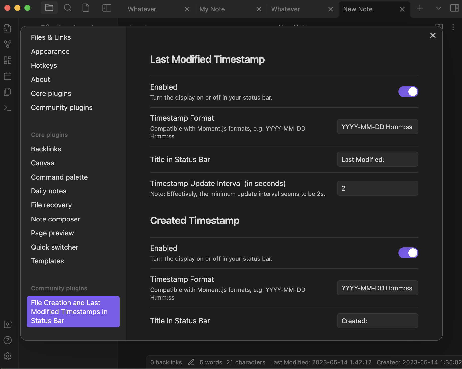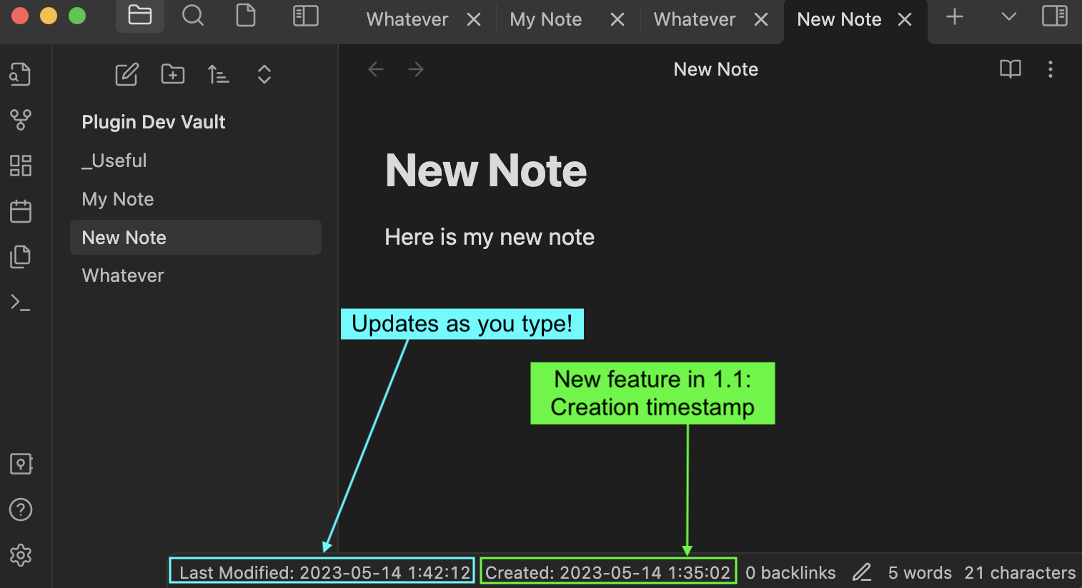 The timestamp updates frequently (every 2 seconds, and when notes are switched).