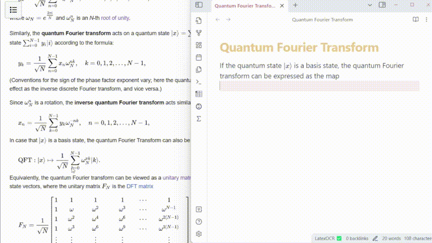 Generate LaTeX equations from images in your vault or clipboard.