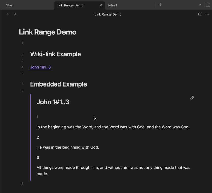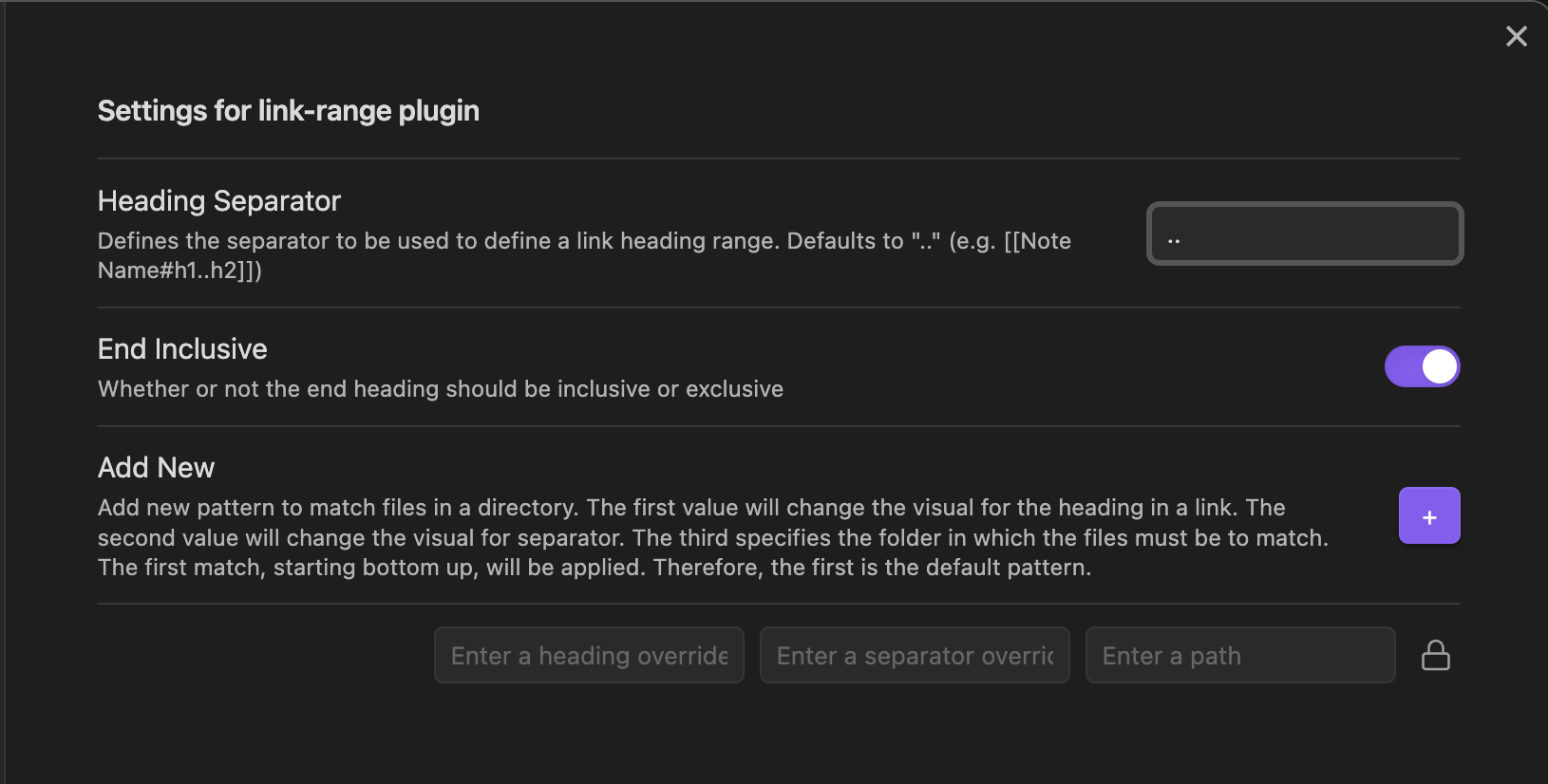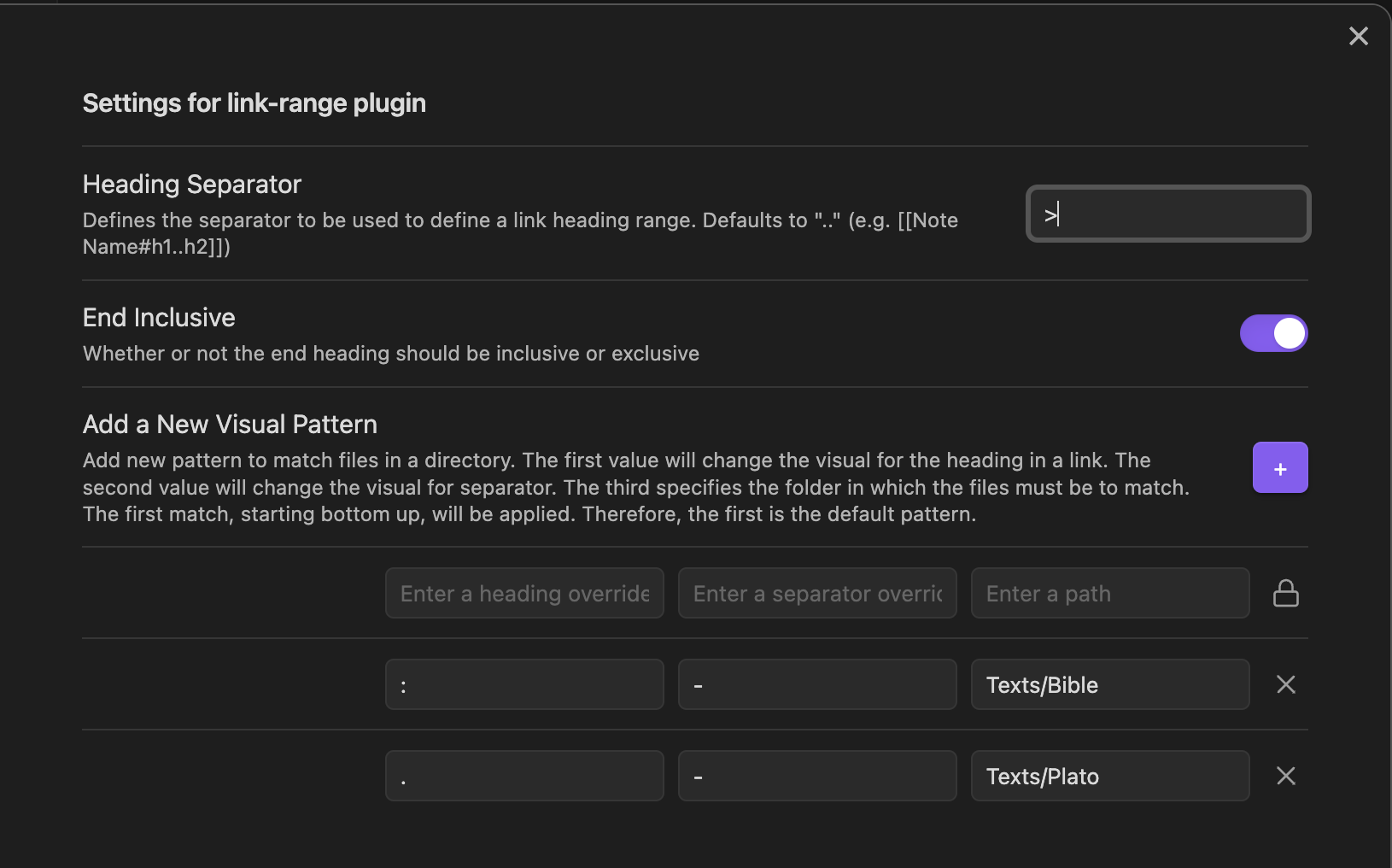 To use, simply use the same wiki-link syntax you're used to in obsidian, but instead of specifying a single header, you can specify a header range separated by a separator string.