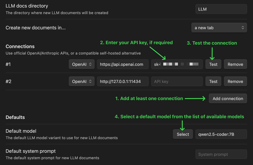 - Also works with self-hosted/local LLMs that expose an OpenAI-compatible API, like Ollama (https://ollama.com)