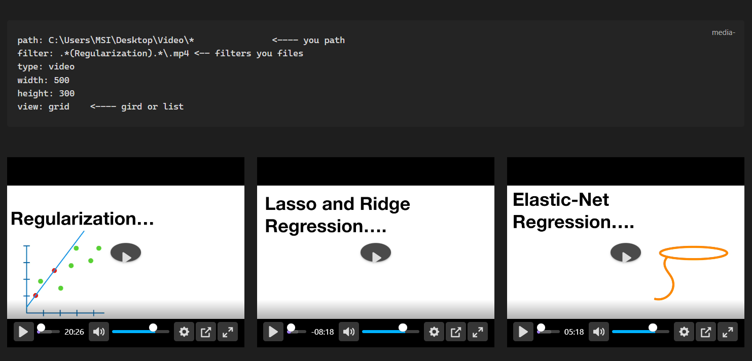 - Easy Embedding: Select a file path in your note, right-click, and choose "Embed selected media path" to automatically generate the media code block.