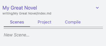 My Great Novel/Index.mdlink under your project name, you’ll be taken back to the index file where you’ll see your new scene listed under thescenesfrontmatter entry: