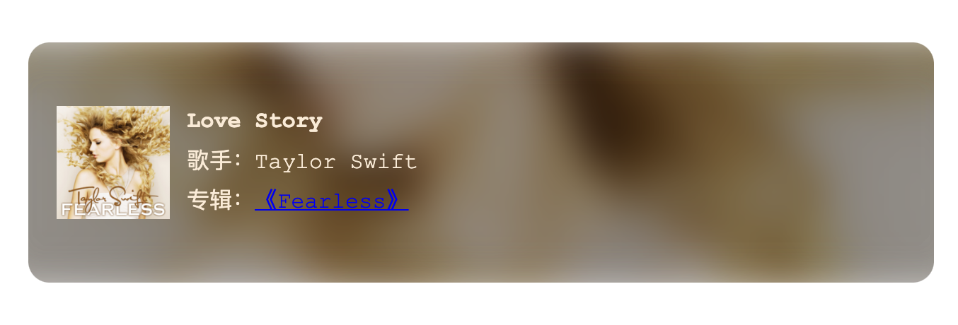 We expand the markdown code block syntax, defining media-card as the identifier for the media information card, and then inputting the card information in yaml format within the code block. For details on the parameters that can be configured in YAML, please refer to Parameters。