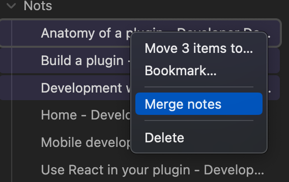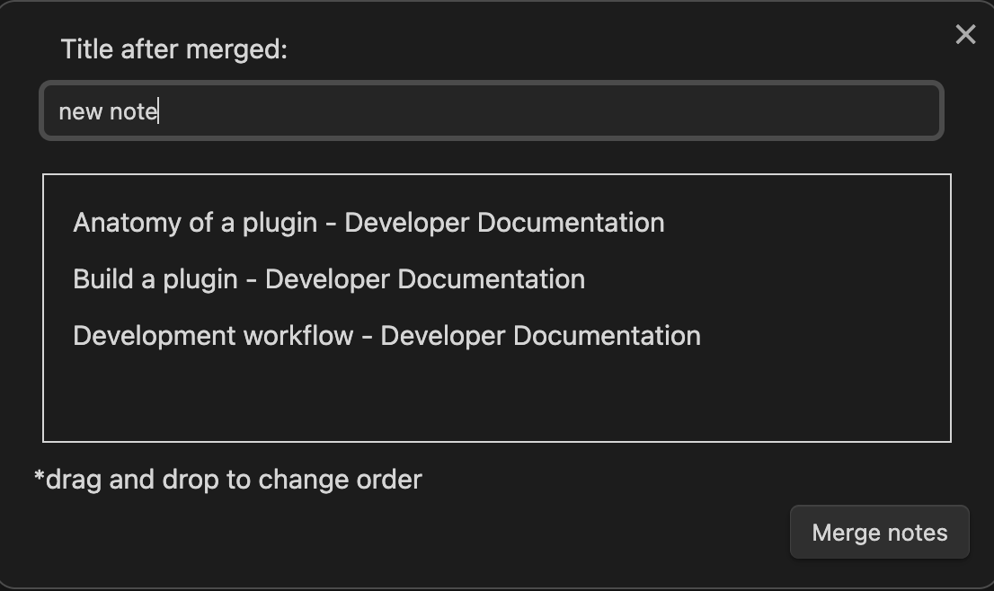 Merge Notes is a plugin for Obsidian that allows you to merge notes selected in the context menu into a single note.