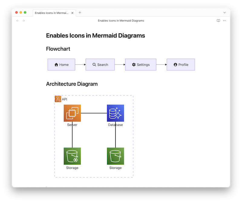 Use Font Awesome and other icon sets within your Mermaid diagrams.