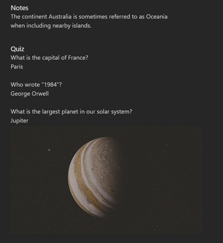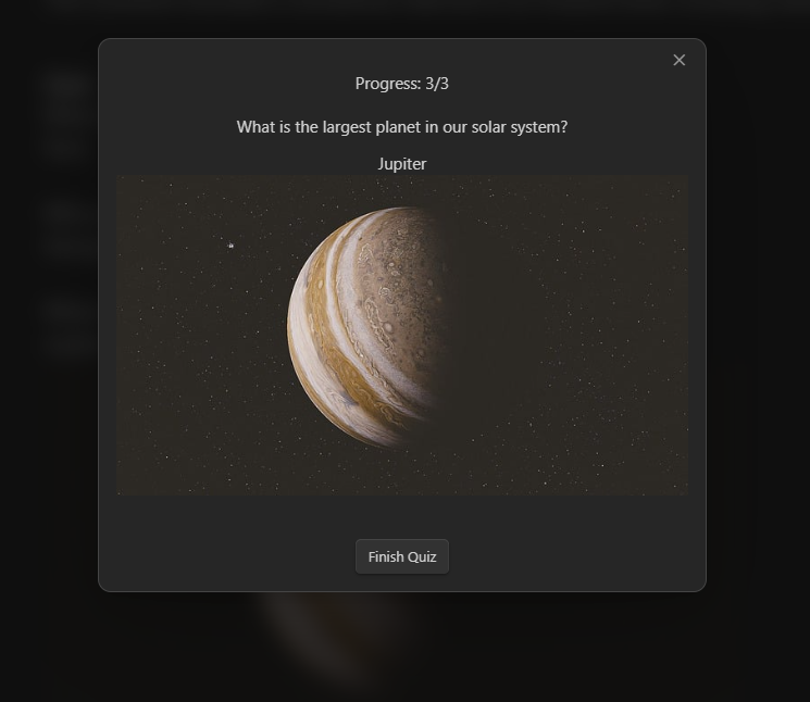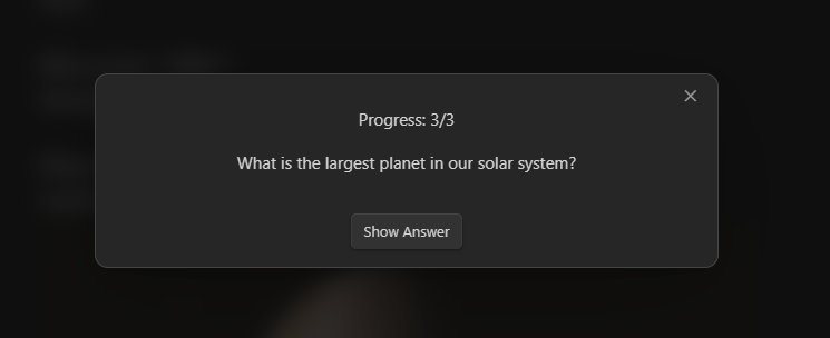 Minimal Quiz is the simplest quiz plugin for Obsidian. Define questions directly in your Markdown files—no extra setup required. Just write, quiz, and learn!