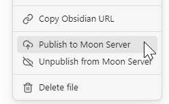 Publish to Moon servercommand. - The note will be published to your Moon server instance and the ID will be applied to note as property.