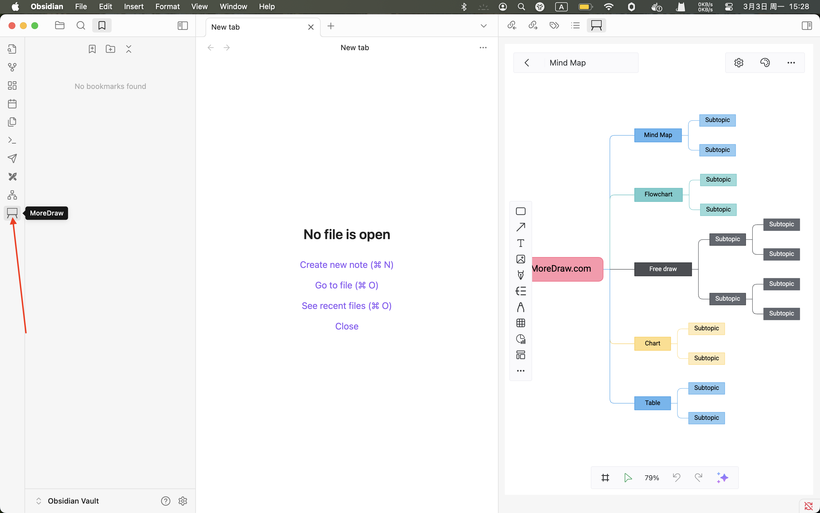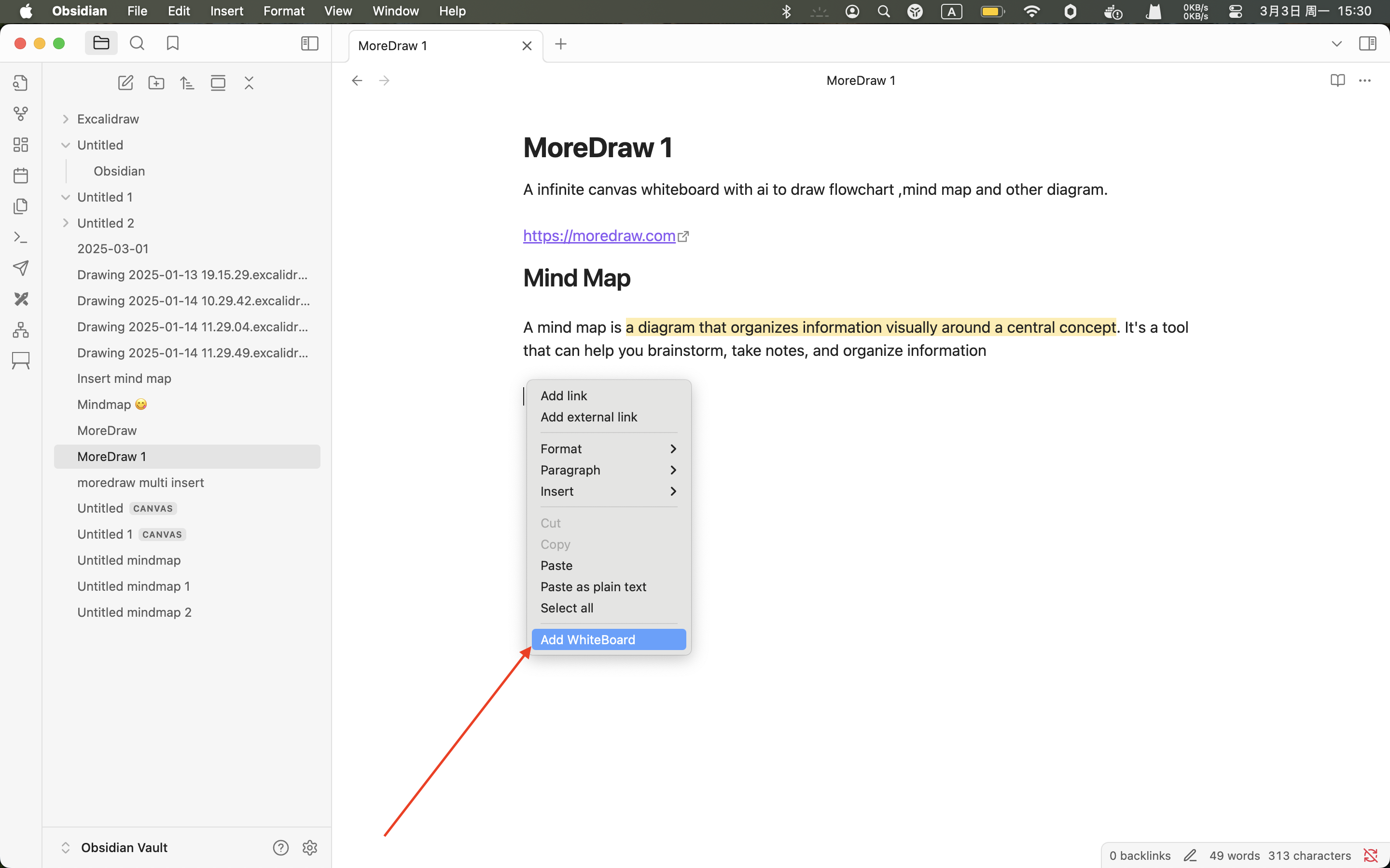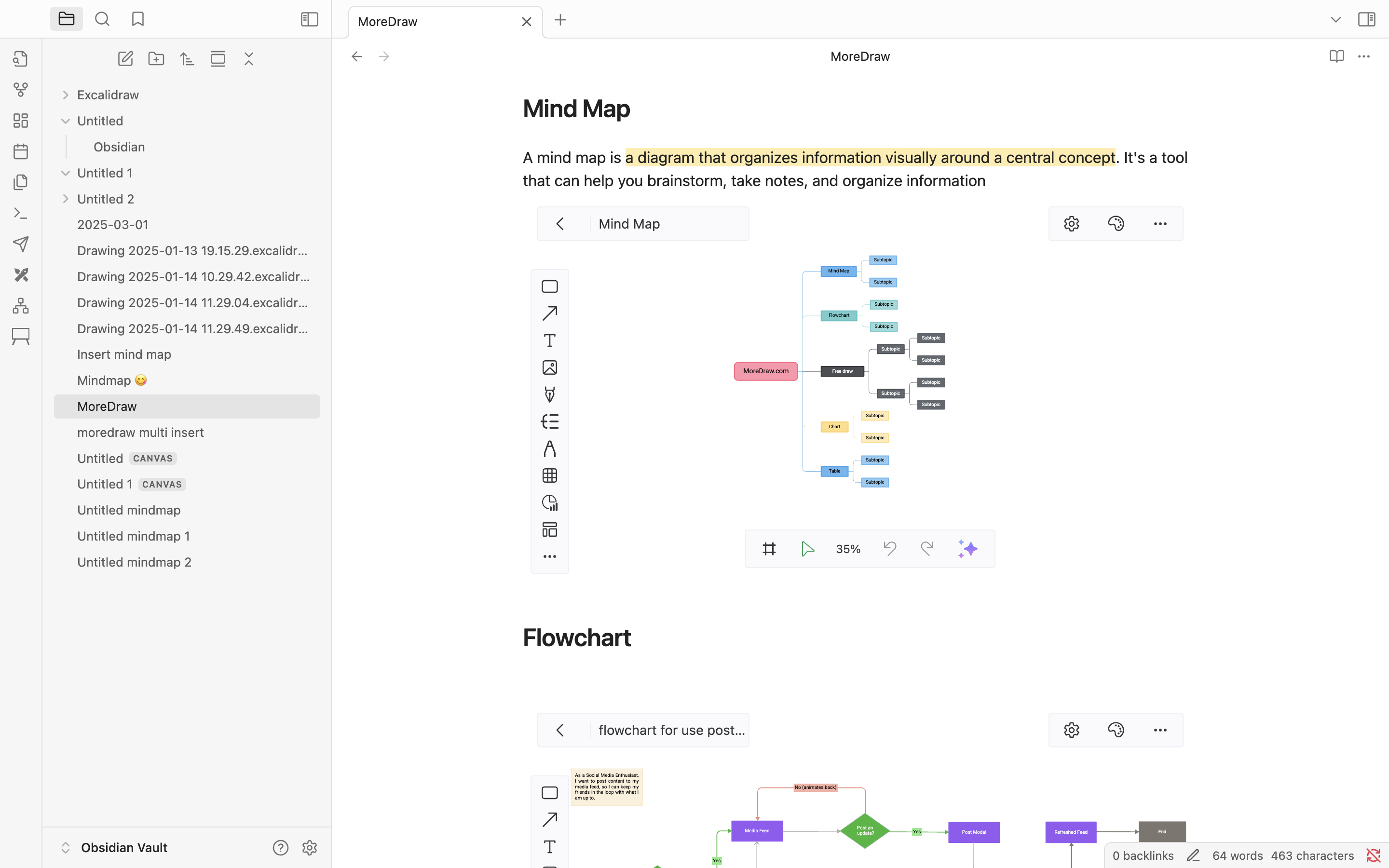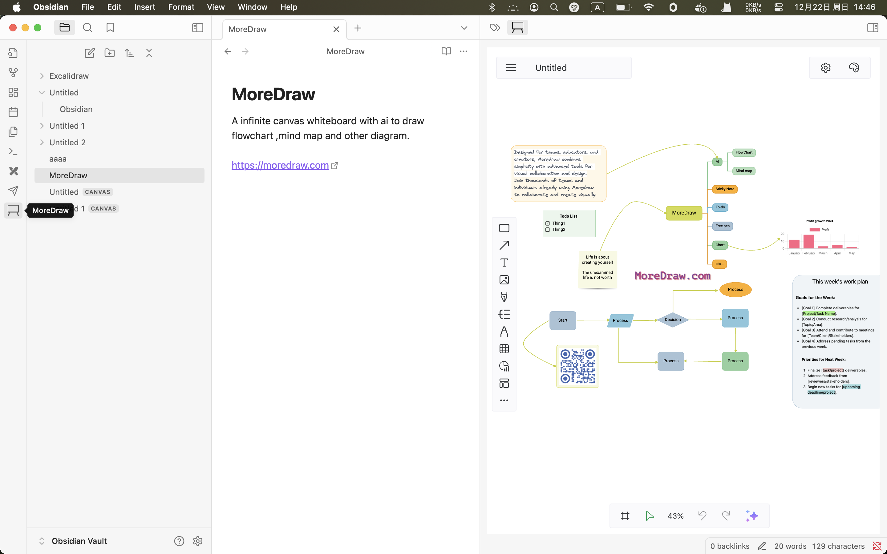 A infinite canvas whiteboard with ai to draw flowchart ,mind map and other diagram. This is a plugin for Obsidian (https://obsidian.md). this plugin use MoreDraw (https://moredraw.com) sdk.