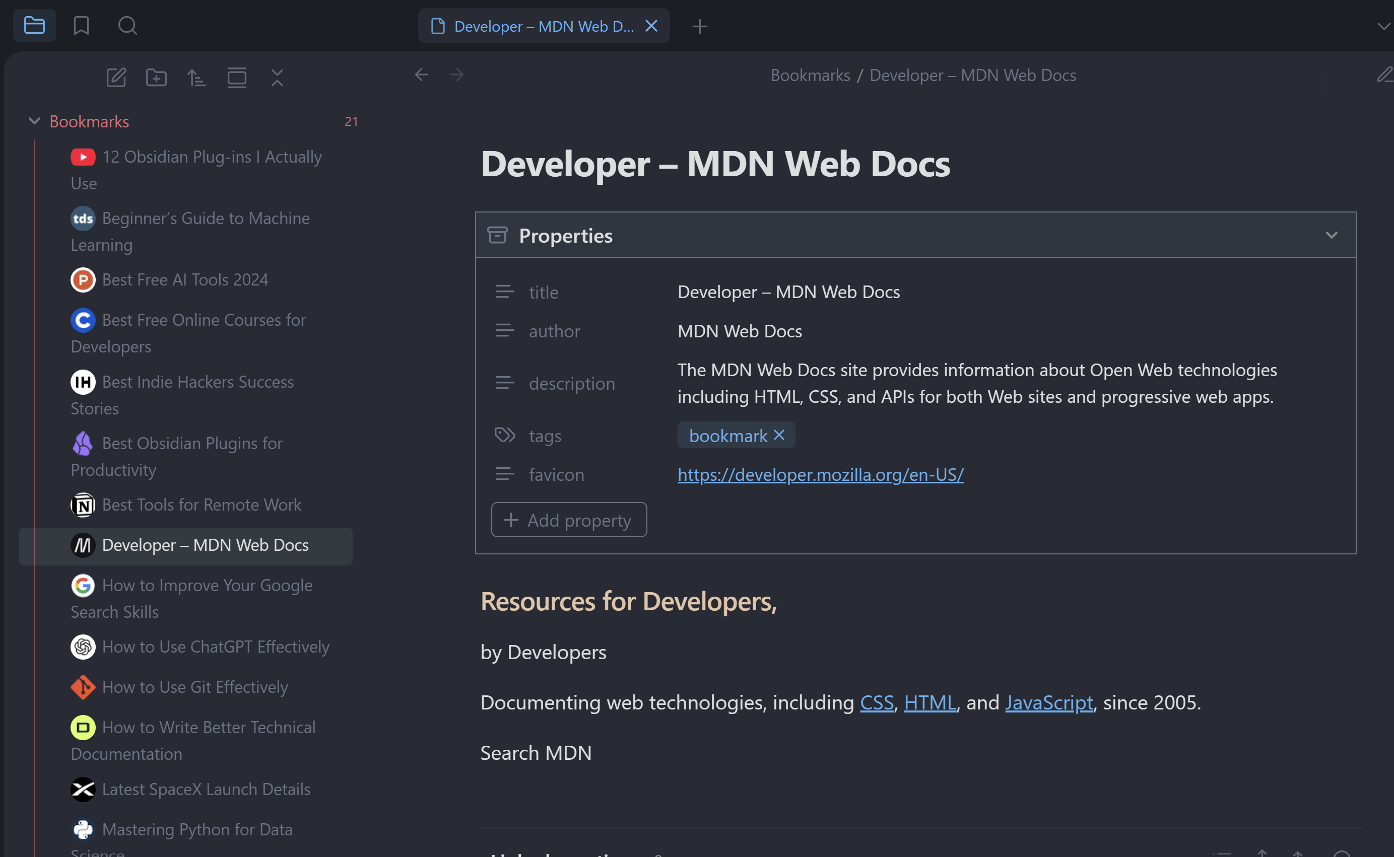 - Favicon Display: Automatically display favicons next to note titles based on URLs provided in the frontmatter.