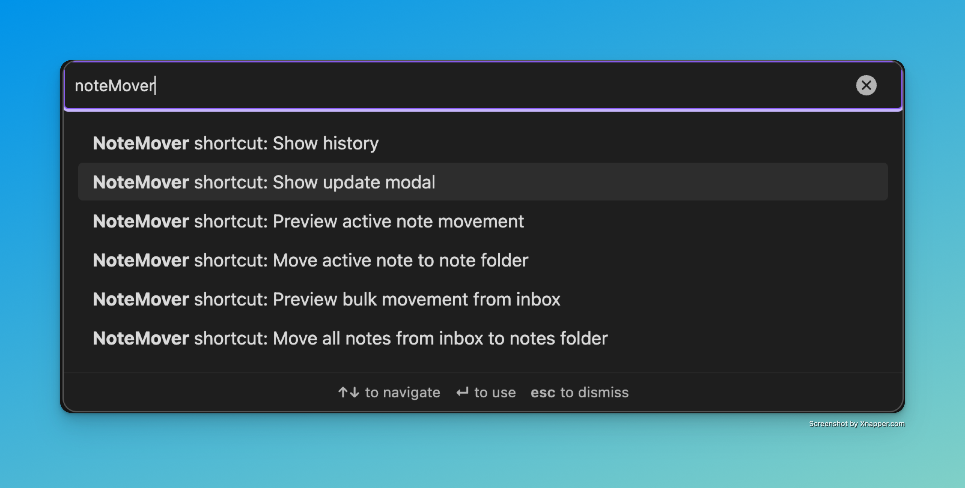 - Execute Command: Execute one of the NoteMover commands from the command palette or use your configured shortcuts.