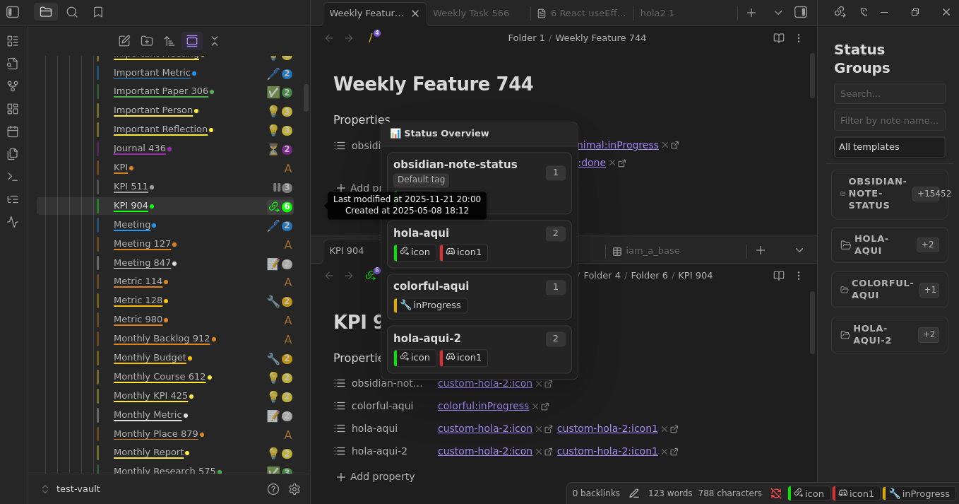 Track the lifecycle of every file in your vault using statuses you fully control. Note Status brings visual clarity and structured workflows to Obsidianβwhether you're managing research notes, writing projects, tasks, or long-term archives.