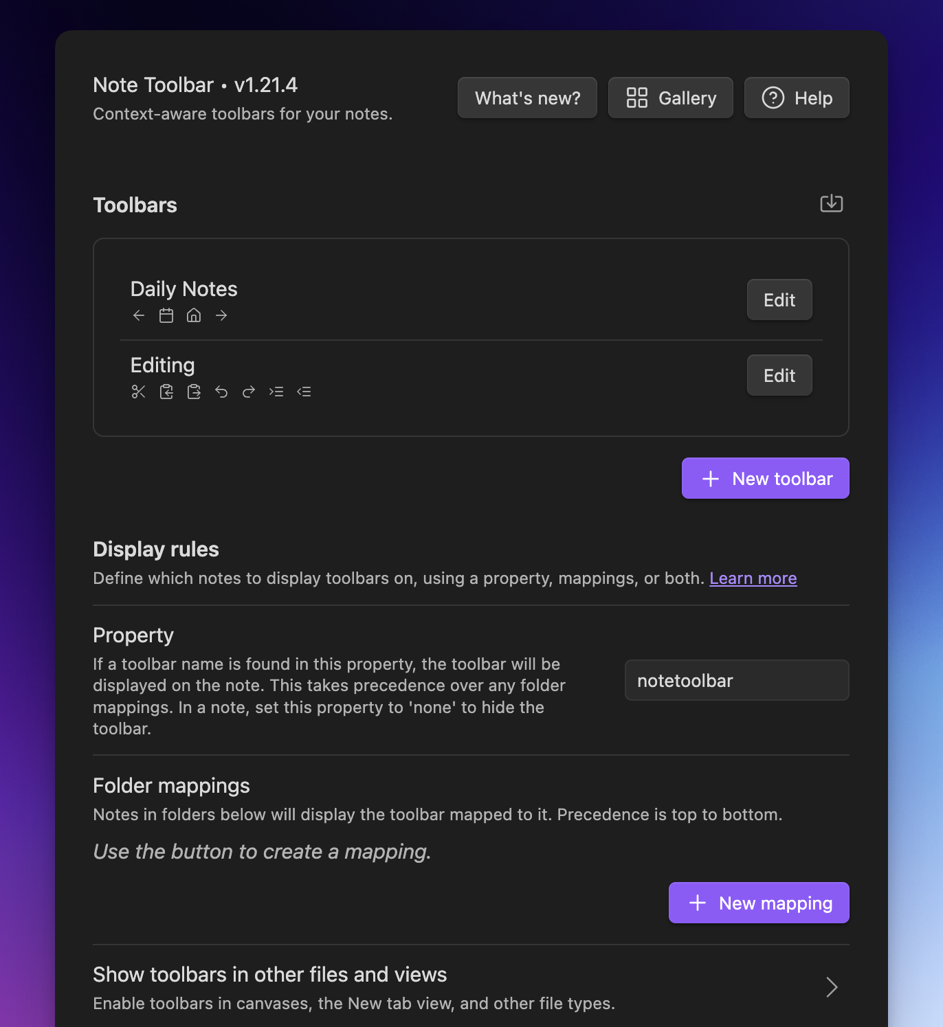 Note Toolbar's UI, and Style Settings options, are also available in: