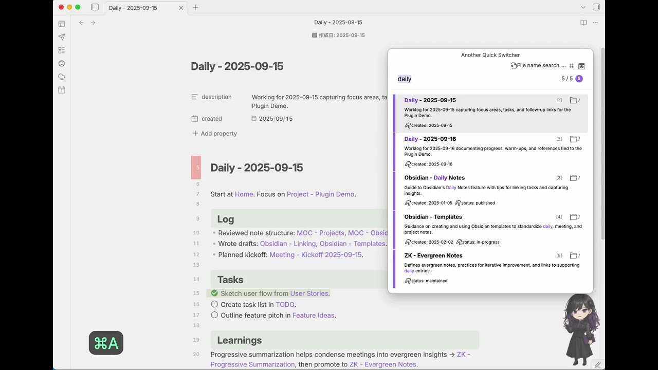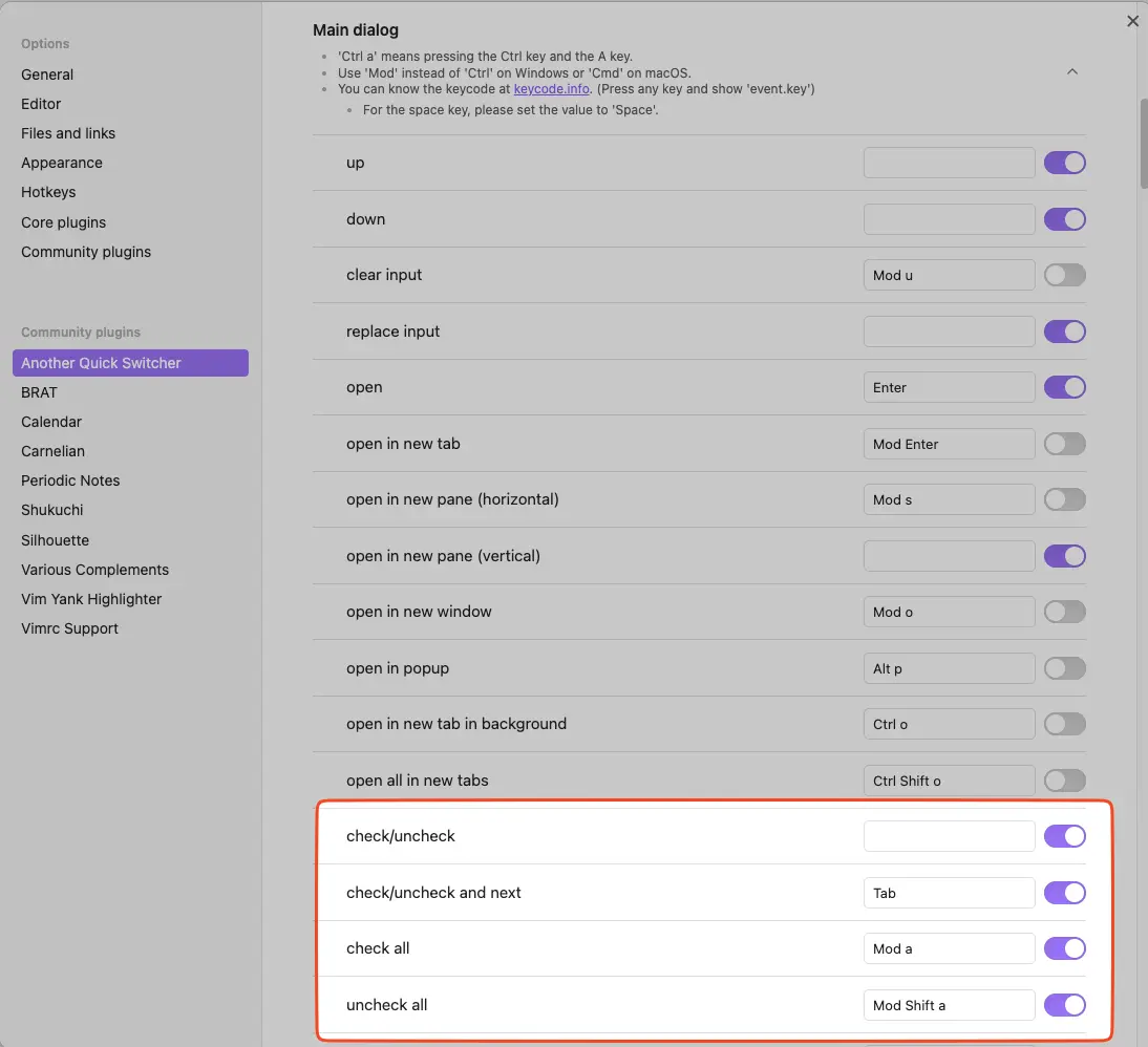 Obsidian Another Quick Switcher Plugin