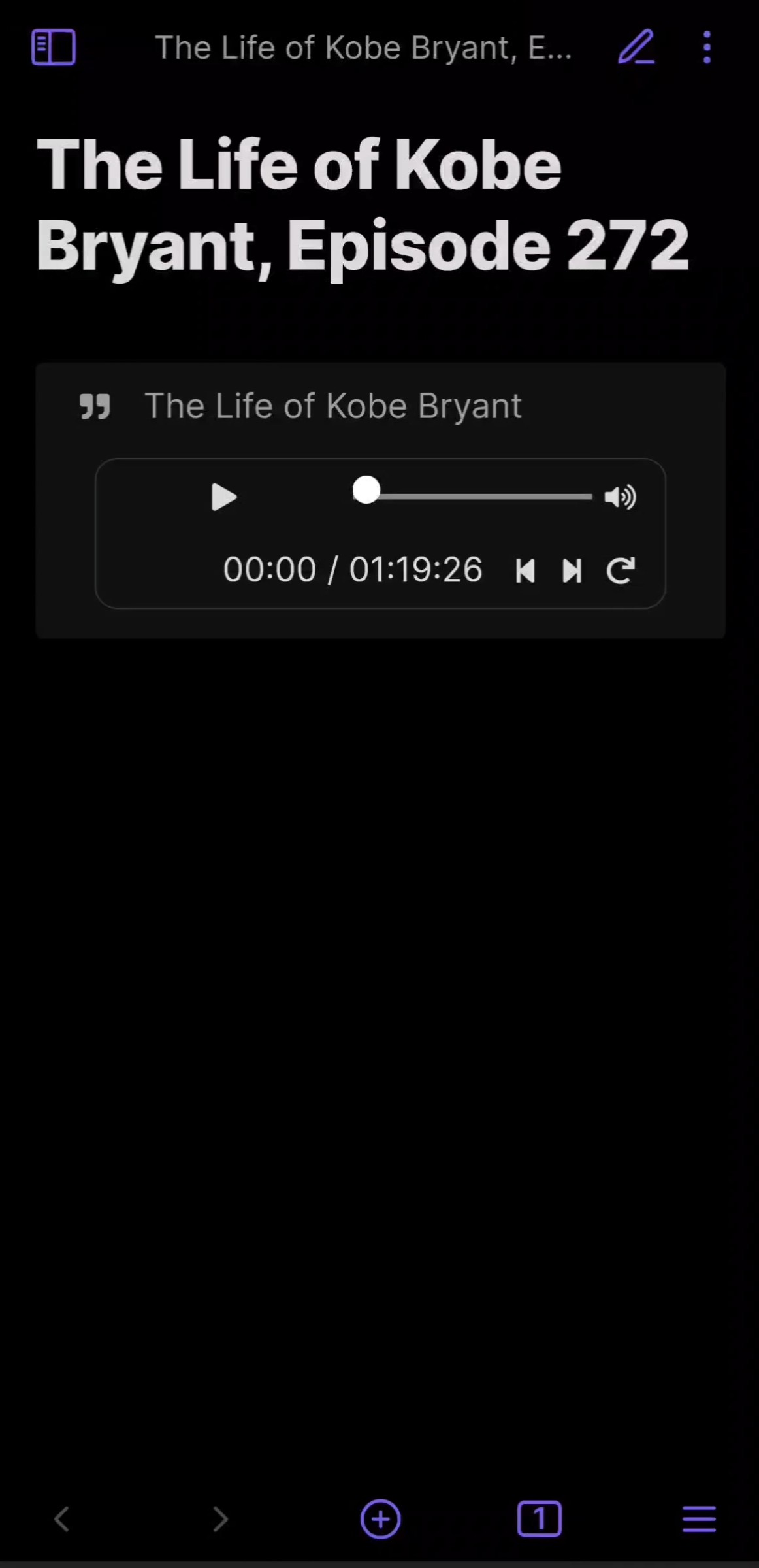 - Pause the audio when you hear something you want to remember and swipe down to create a new audio note at the end of the Obsidian note. You can add any personal thoughts at this time below the newly-generated note.