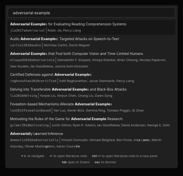 - Insert literature note reference (Ctrl+Shift+E): insert a link to the literature note corresponding to a particular reference.