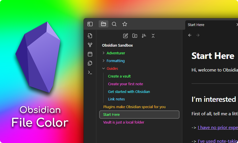 This is a plugin for Obsidian, which allows you to select colors for your files and folders in the file explorer.