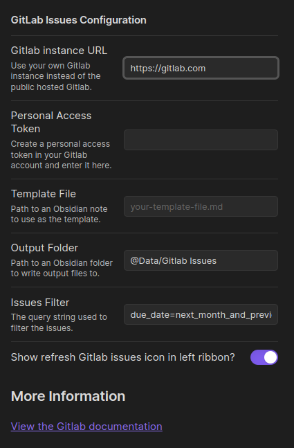 The latest issues are loaded from Gitlab 30 seconds after Obsidian is started, and then automatically every 15 minutes.