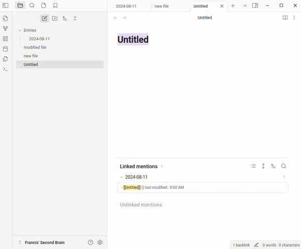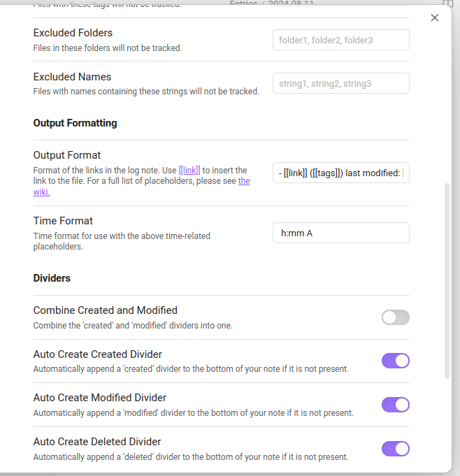 This plugin links all modified files meeting certain criteria to a daily/weekly/monthly note. This provides an accurate log/archive of files modified during specific time periods.