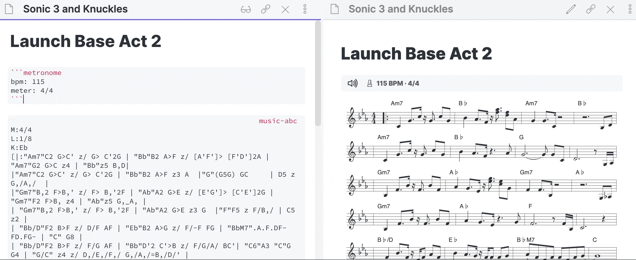 The metronome works great when placed alongside music notation using the obsidian-plugin-abcjs plugin.
