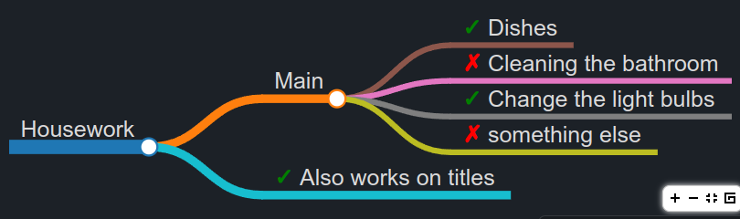 Copy a PNG of the mindmap to the clipboard. Background and text color are configurable in settings or the document's frontmatter.