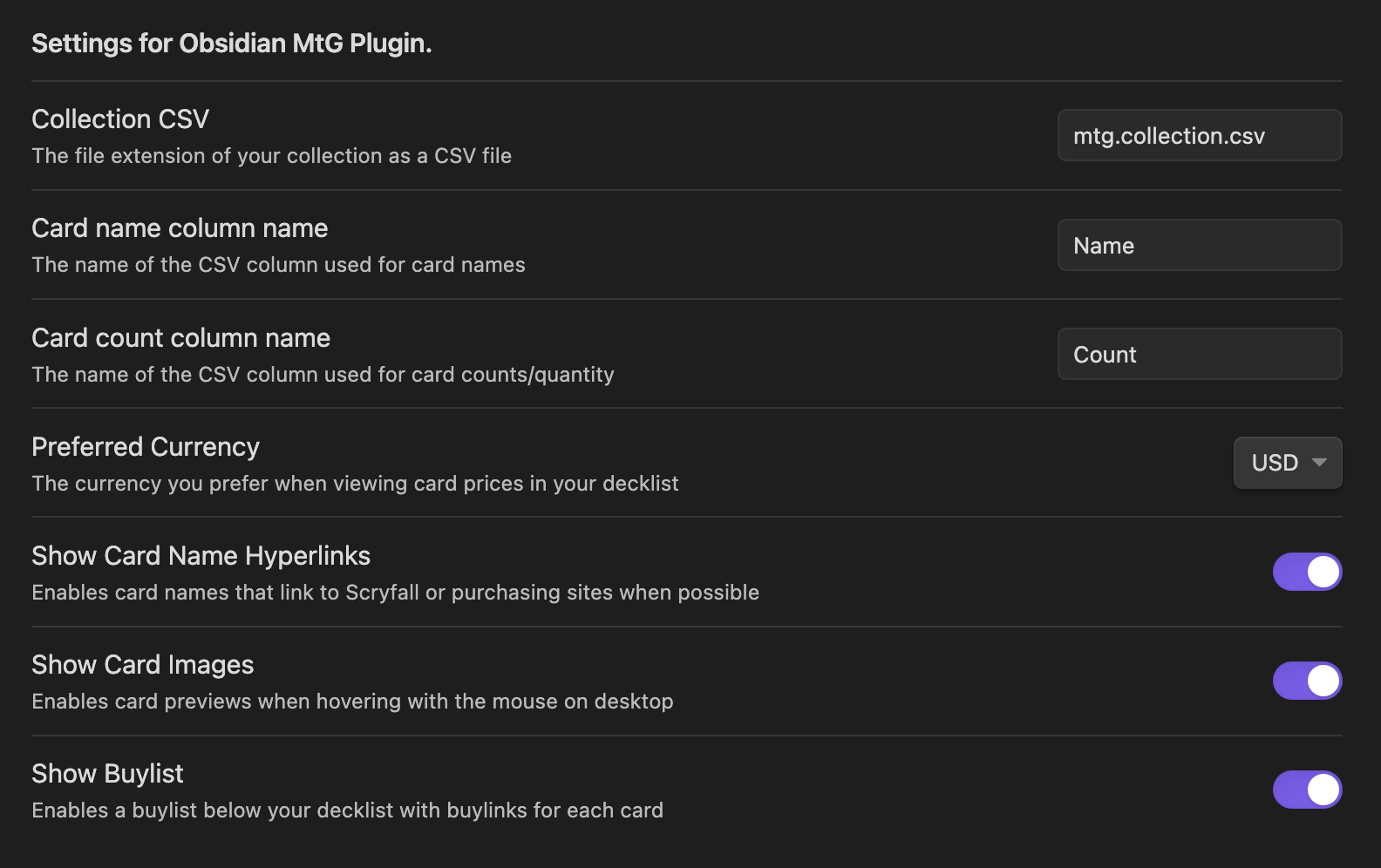 This is a plugin to manage your Magic: The Gathering card collections and decks as Obsidian notes.
