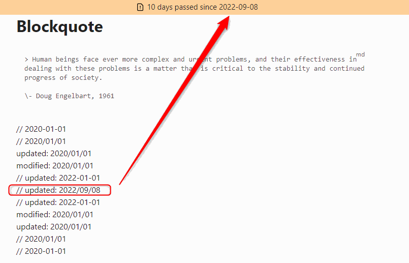 This Obsidian plugin shows admonitions if the note has not been updated for over specific days.