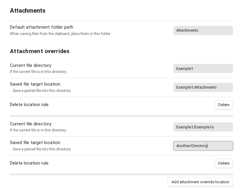 - Attachments can be automatically saved to different locations based on the directory of the file being pasted into.