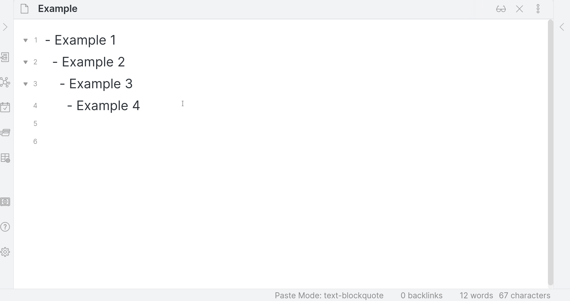 Paste Mode takes over the paste functionality within Obsidian. It has eight "paste modes," which determine what happens when one pastes text within a file in Obsidian. All of the below will honor the cursor's current indentation when pasting, except for "Passthrough" mode, which uses Obsidian's default paste functionality.