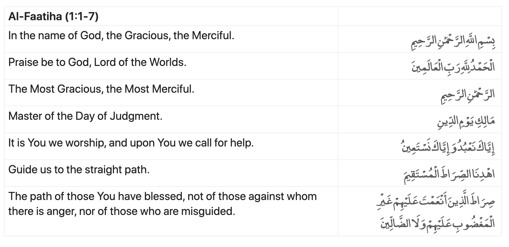 This pastes the verse or verses in a Markdown Table view with the arabic verse on the right column and the translation on the left.