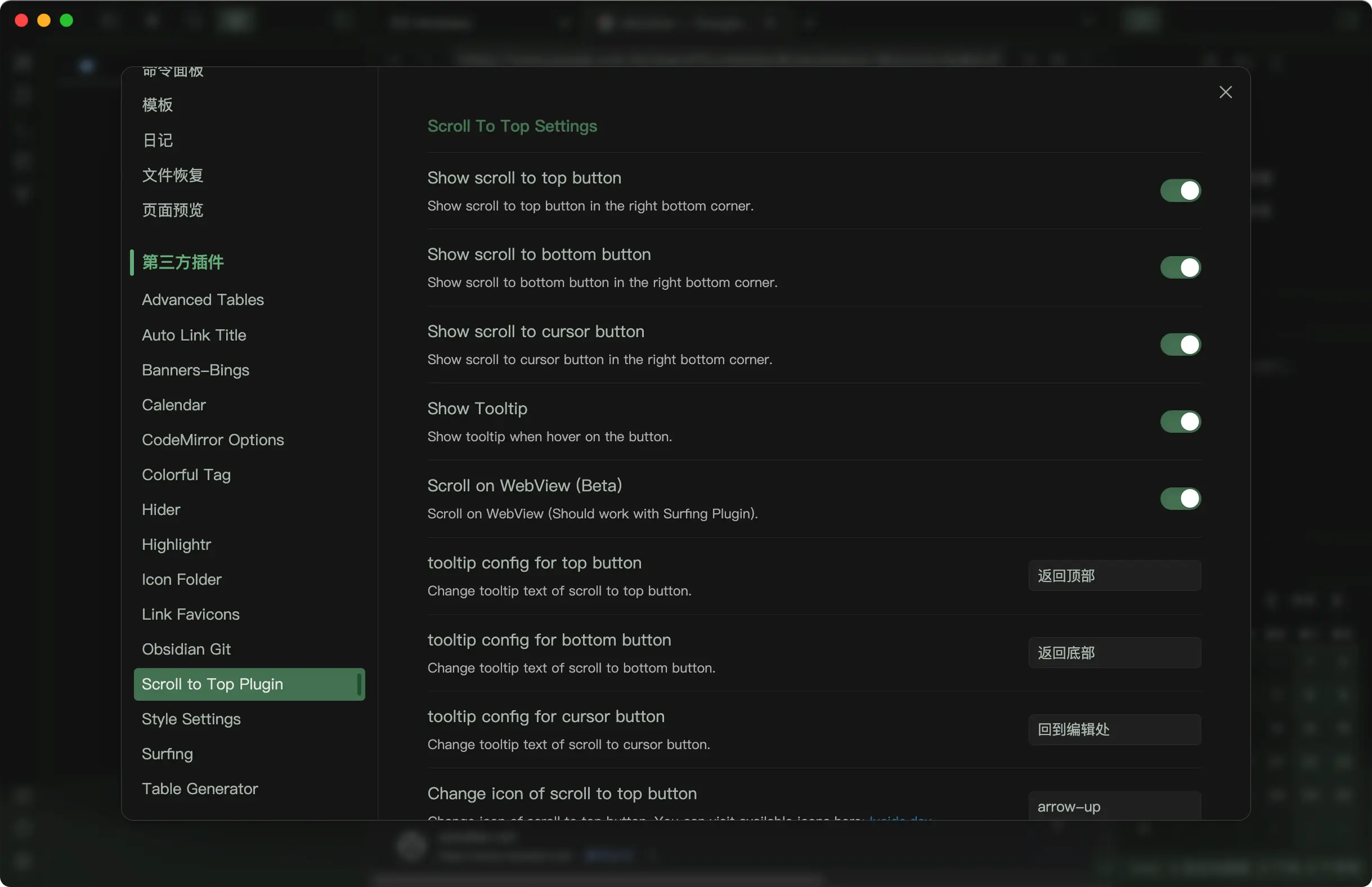 This is a plugin for Obsidian that adds a button to scroll to the top of the current note (Not just that).