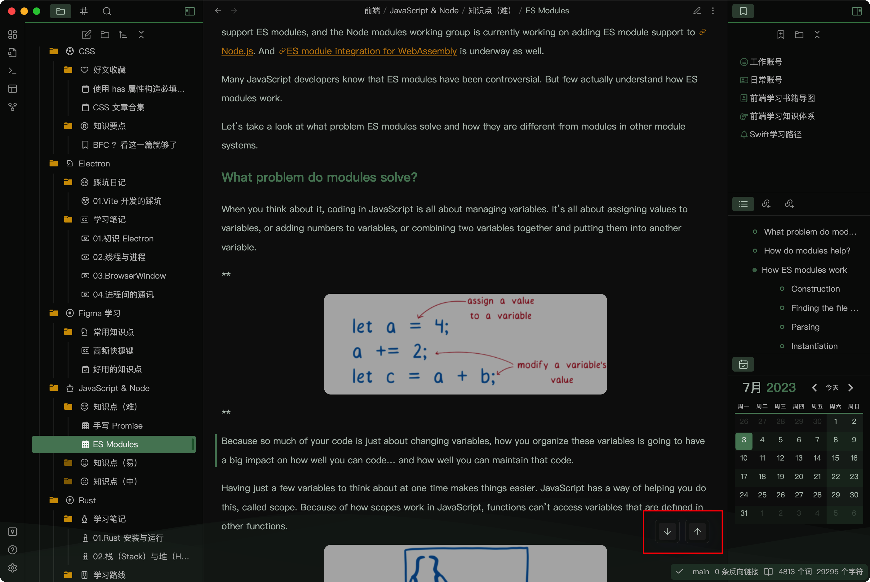 Add a button to scroll to the top of the current note.