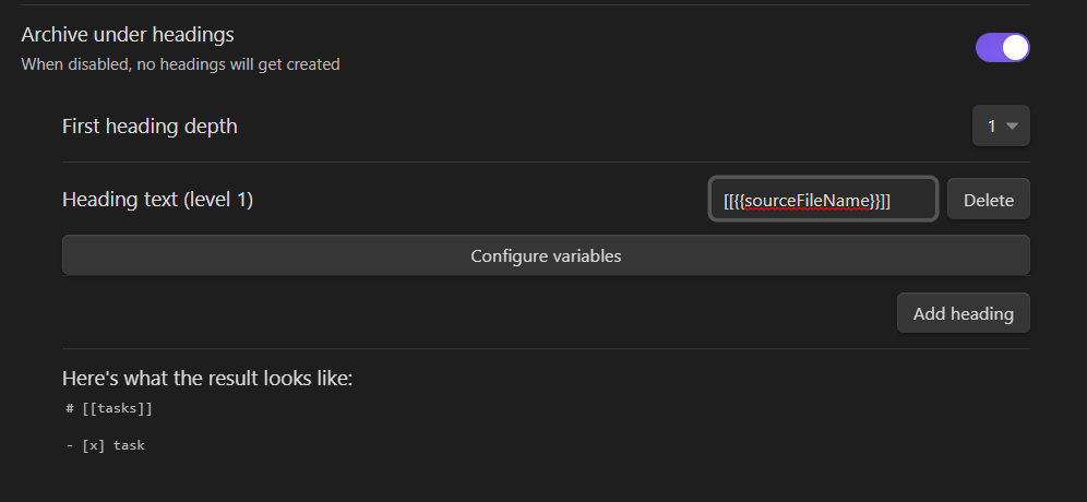 {{headingChain}})- Creates a chain from headings above the task. E.g.