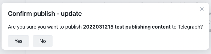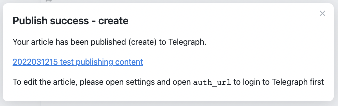 If you have already published a note, you can change its content and simply run "Publish to Telegraph" again to update the existing page. The modal will shown as below:
