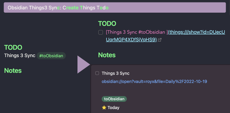 A cross-platform Obsidian plugin for syncing todos (as well as tags, dates) between Obsidian and Things3 (with multi-language support).