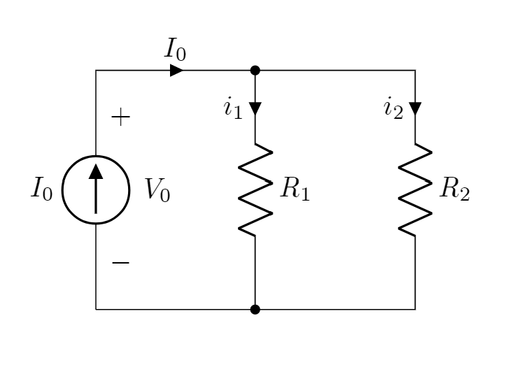 to[isource, l=$I_0$, v=$V_0$] (0,3)