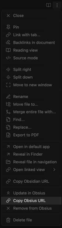 Right-click the note in the browser and click "Copy Obsius URL".