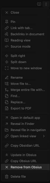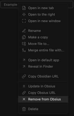 Right-click the note in the browser and click "Remove from Obsius".