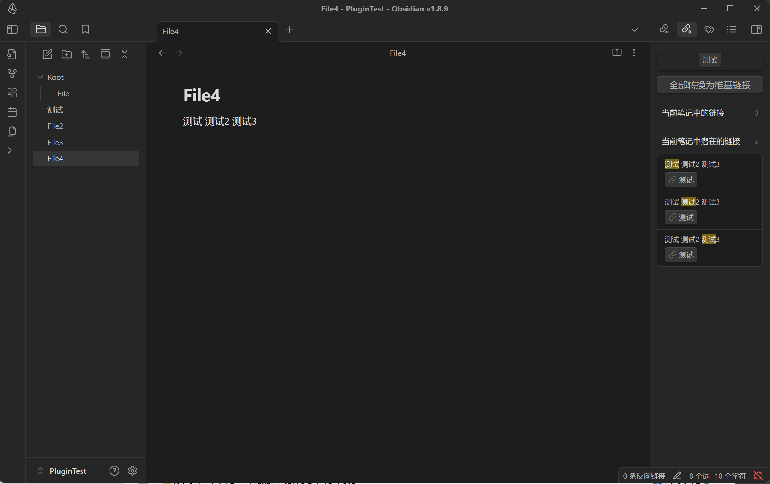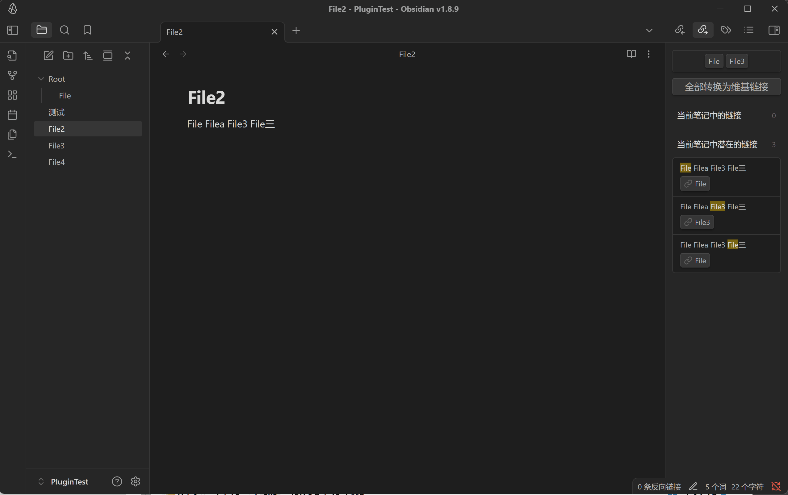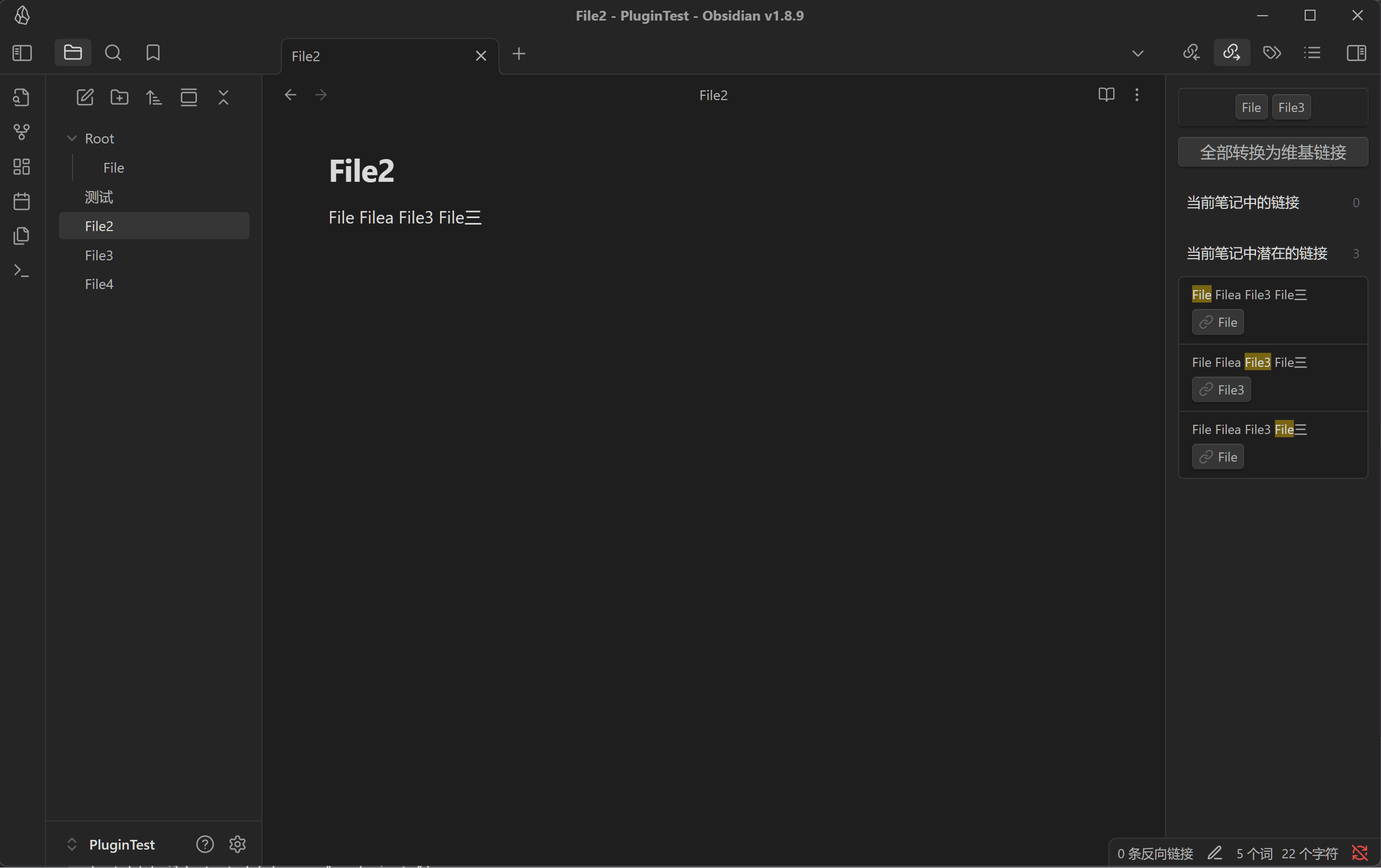 一步维基链接是一个 Obisidian 插件,它可以让你在编辑器中一步转换当前打开的文档中匹配的维基链接(出链链接)。