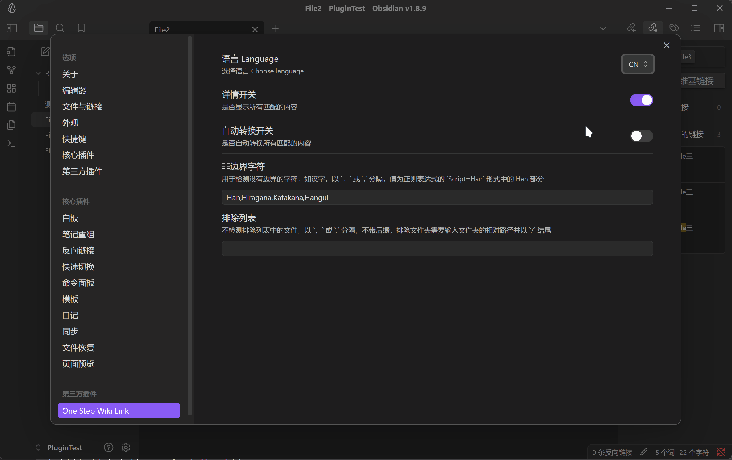 - 排除文件或目录:输入文件或目录的名称,以逗号分隔,插件将不会转换这些文件或目录中的维基链接。
