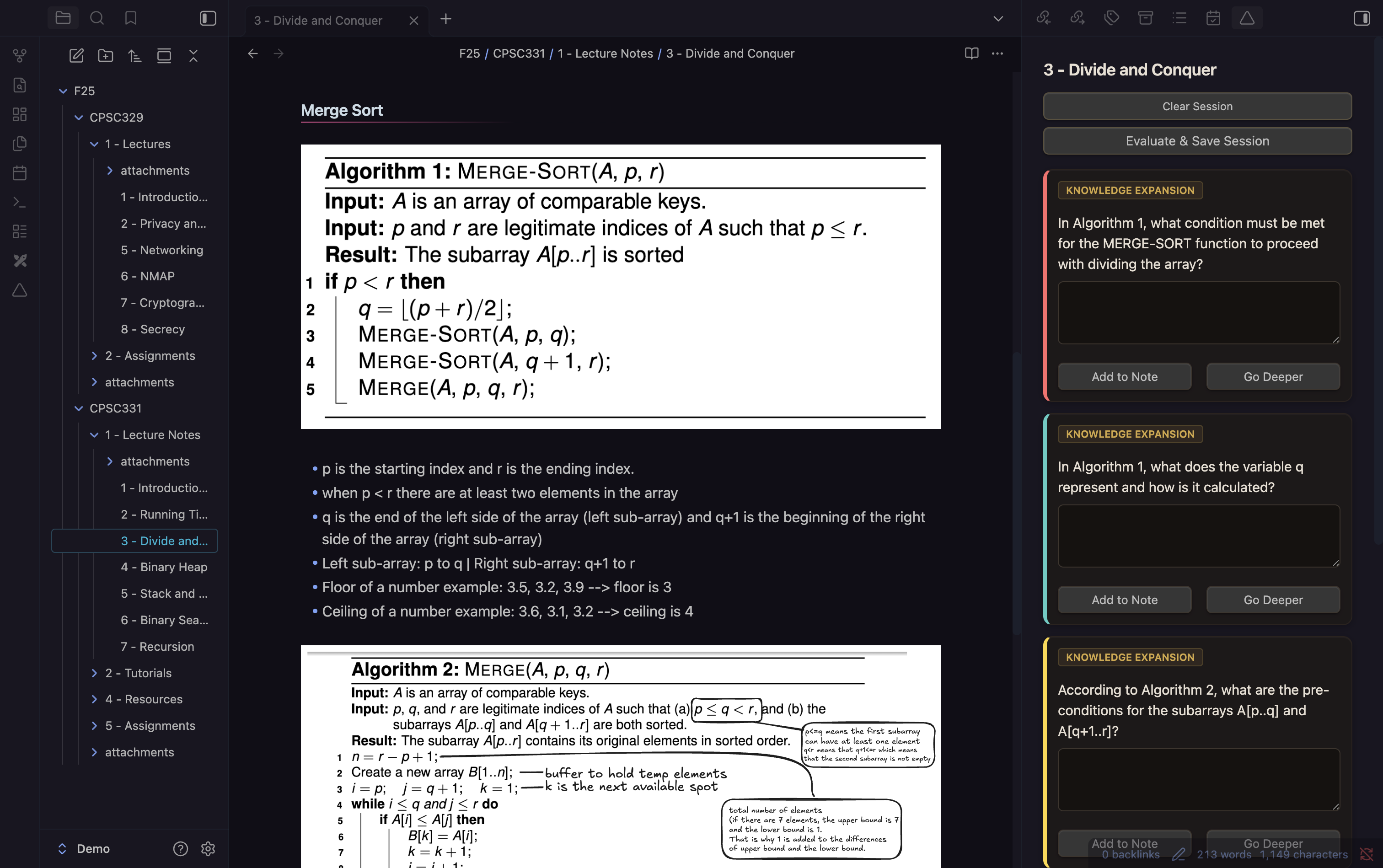 - Knowledge Expansion: Probing questions to test your understanding.