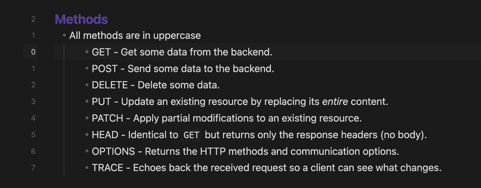 - Absolute - Standard line numbers (1, 2, 3...)